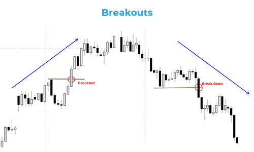 When a level that has been tested many times is broken through it is called a breakout. Breakouts are important events during trading and therefore there is a strategy in which trade decisions are made around them.